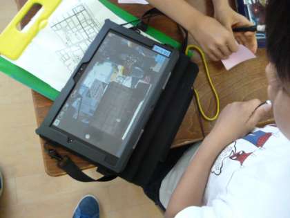 タブレットで撮影した画像を見直したり、見つけてきた建物をグループごとに分けたりしました。