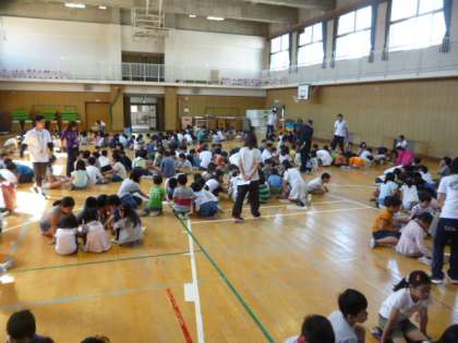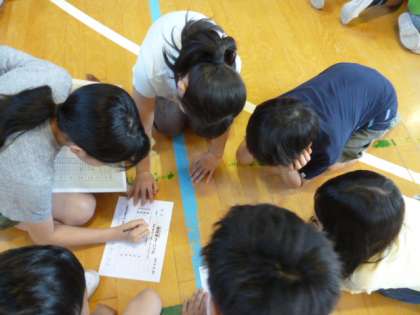 今日の児童集会は、来週行われる晴明南カーニバルでお店を回るグループ編成です。