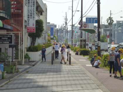 学年ごとに分かれて、南港通りの北側歩道を掃除しました。暑い中でしたが、一生懸命ゴミを探し、落ち葉や小さなゴミまで集めていました。よりきれいな歩道になりました。