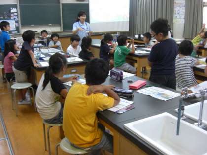 9月17日(水)サントリー(株)の方にお越しいただき、総合的な学習の環境問題について考える学習として「水育」に取り組みました。