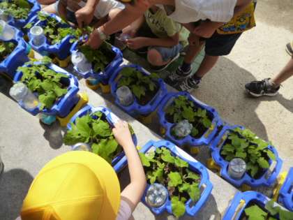 あさがおが、毎日の水やりのおかげでたくさん芽を出し、葉が多くなってきました。