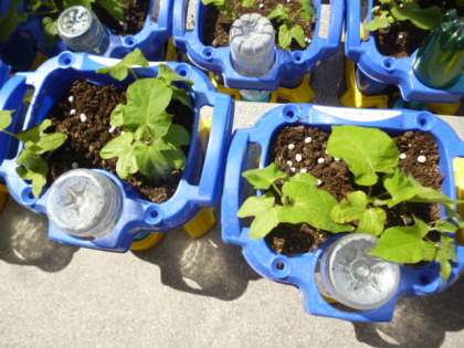 あさがおが狭くてきゅうくつそうなので、植木鉢に3ずつにすることにしました。