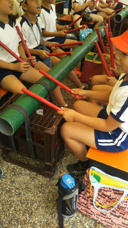 今日は3年生が阿部野神社で、夏祭りのたいこ体験を、させていただきました。