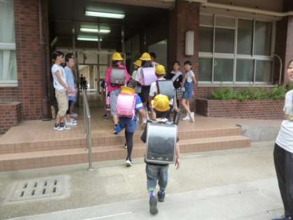 運営委員の児童が、毎朝正門に立ってあいさつをしています。
