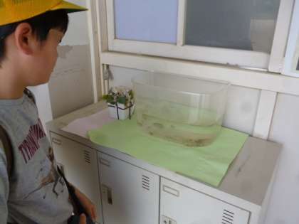 校長室の前に置いていると、たくさんの児童が見ていました。