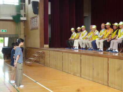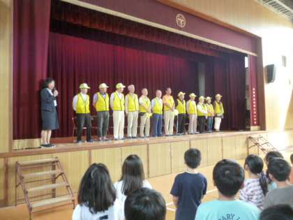 朝会の後、見守り隊のみなさんに学校に来ていただき、お礼の会をしました。