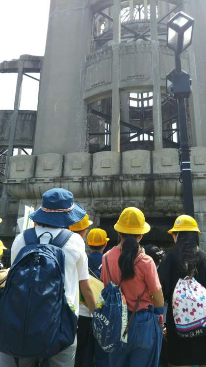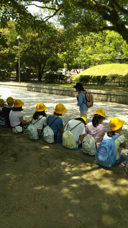 そのあと、ボランティアガイドのかたに案内してもらって、平和記念公園をめぐっています。