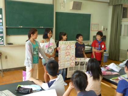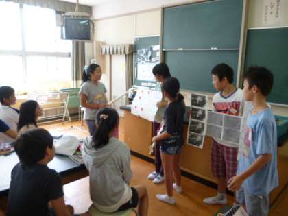 アメダスの降水量、天気図、気象衛星の雲の動きを見ながら、班のみんなで考えた天気予報を発表しました。