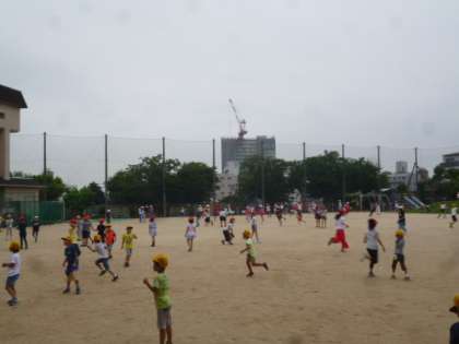 雨の日が続いていますが、今日は、雨が降っていなかったので、久しぶりに運動場で遊べました。