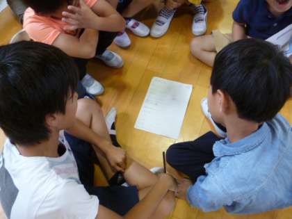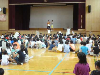 今日の児童集会は、ゲーム集会です。「穴あき単語ゲーム」をしました。