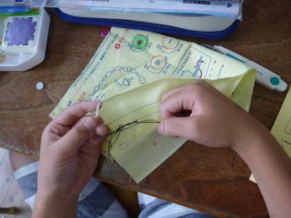 はじめのうちは、針の穴に糸を通すのもうまくいかなかったのですが、回数を重ねるにつれ、スムーズになってきました。