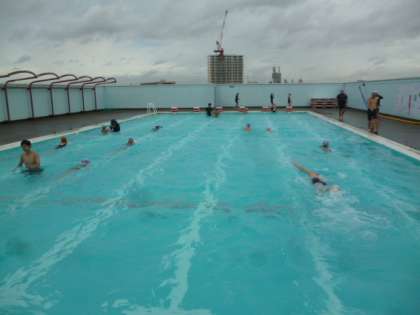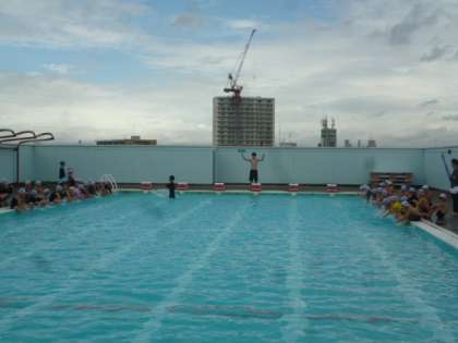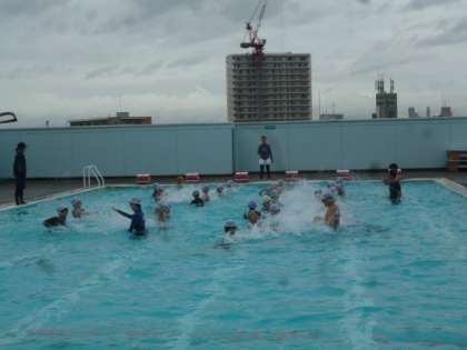 今日は、朝方の雨もあってか参加人数が少なかったですが、元気いっぱい泳いだり、宝さがしをしたりしました。