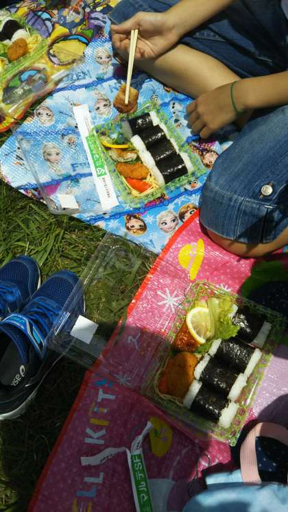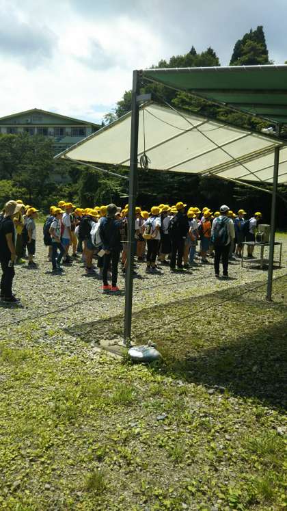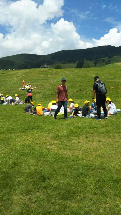 宿舎に到着し、高原でお弁当のお昼ご飯です。