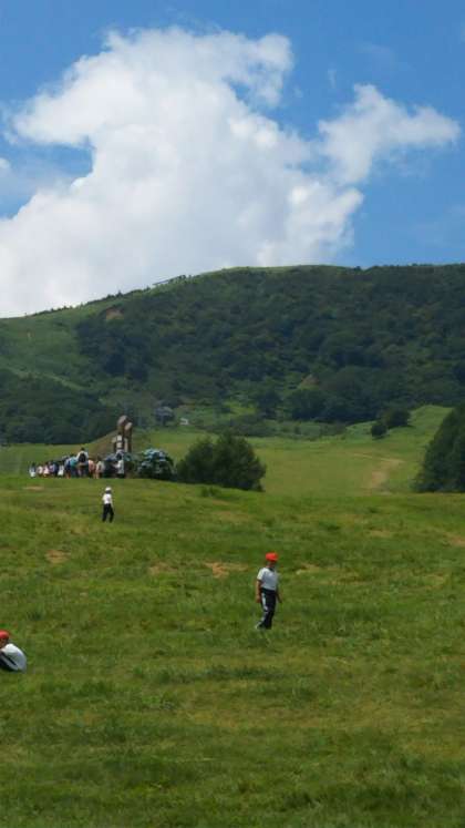 高原で、思いっきり走り回ったり、転げ回ったりしながら遊んでいます。