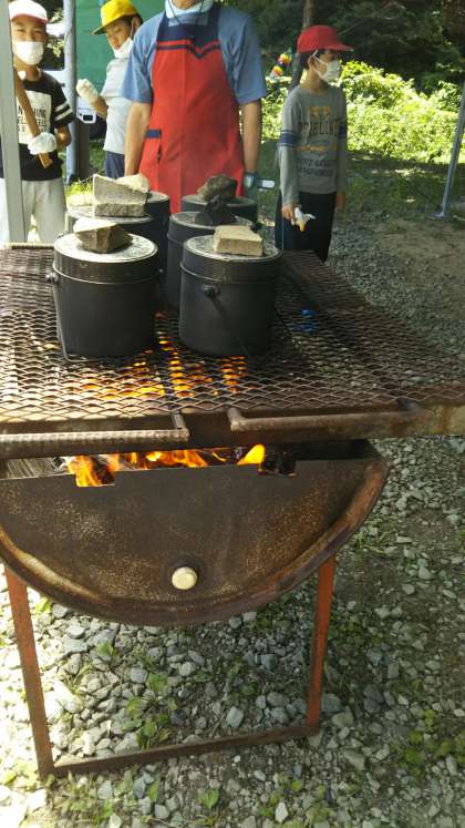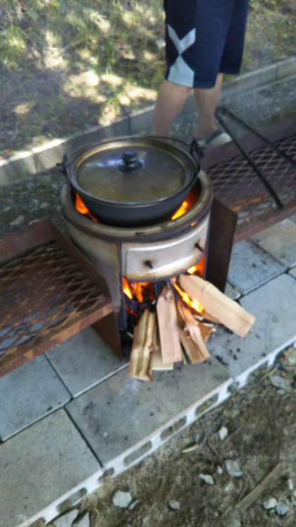 薪の煙が、目にしみても頑張って、火の番もしました。