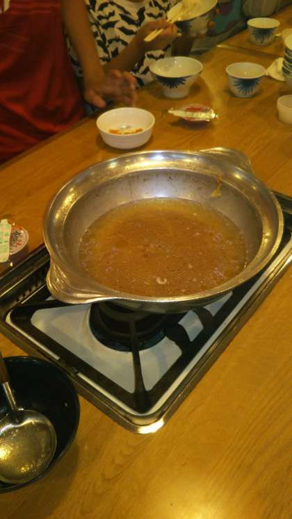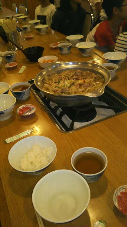 お鍋はあっという間に空っぽ。おつけものや鍋の汁でご飯を、おかわりしてる子も!