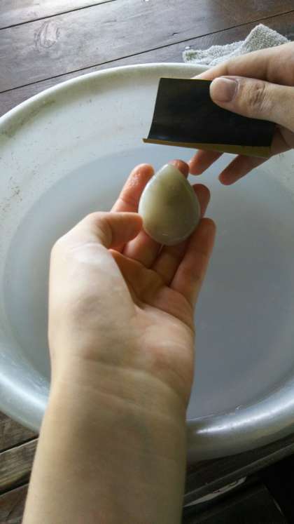 滑石という石をやすりを使って形をつくり、磨いていきます。