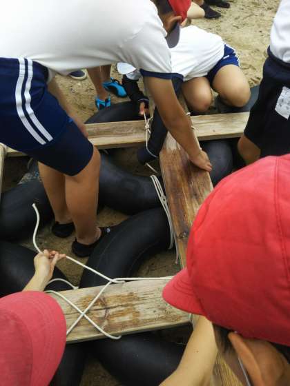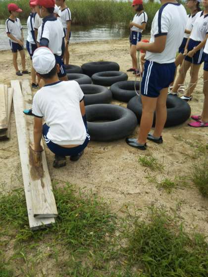 6年生 自然体験学習 2日目 No.4 いかだづくり2
