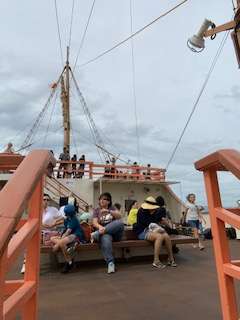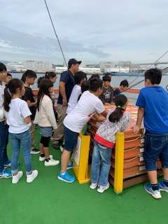 午前中、サンタマリア号に乗って、海の学習をした後、出航。