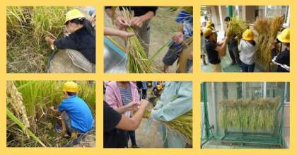 春に植えた稲が育ったので、稲刈りをしました。