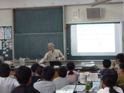 ゲストティーチャーを招いて、流れる水のはたらきについて学習しました。