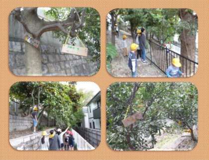 木には、何の木かわかるように栽培委員会の児童が作ったプレートを付けています。