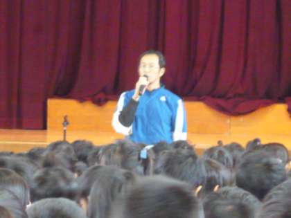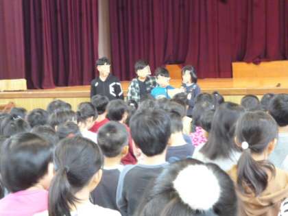 今日から、登校時間に運営委員会の児童が正門に立ち、あいさつをしています。