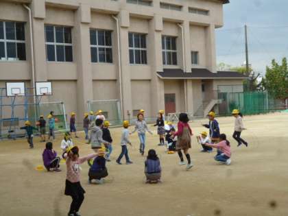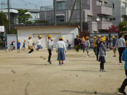 日にちによって、「低学年」「高学年」「たてわり班前半」「たてわり班後半」ごとに分かれて行います。今日は高学年の日ですが、低学年も一緒になわとびをしていました。