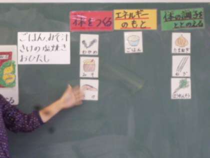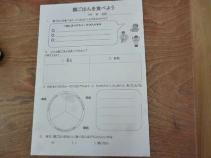 朝ごはんは一日の活動の源になることや、栄養のバランスを考えることを確認しました。