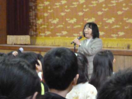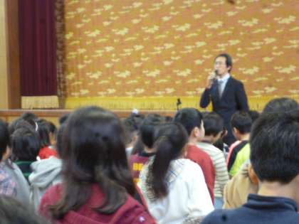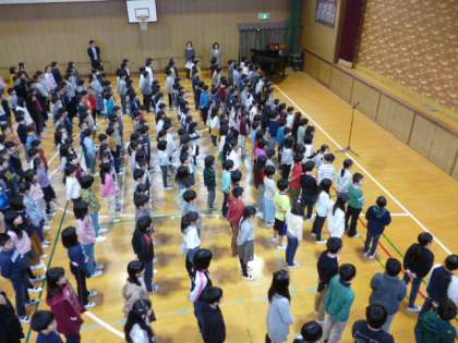 校長先生のお話を聞いたり、校歌を歌ったりしました。