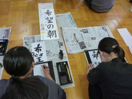 「希望の朝」という字を丁寧に心をこめて書きました。