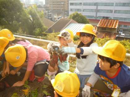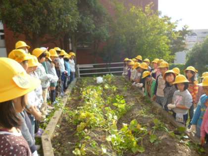 土の中からサツマイモの顔がのぞいたときは、学習園一帯に歓声が広がりました。