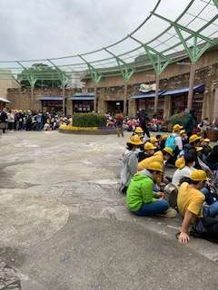 今日の、枚方パークは卒業遠足の学校がいっぱいです。もうすぐ入園します。
