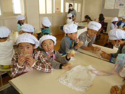 2年生が、先日収穫したサツマイモでおいもパーティーをしました。