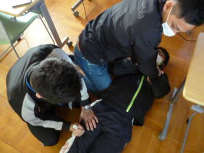 児童が食物アレルギー等を発症した場合の対応について、エピペンの使い方の研修を行いました。