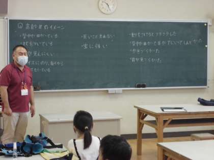 体の自由が利かない気持ち、介助する側の気持ち、体の各所の疲労感などが実感できた貴重な学びの場となりました。