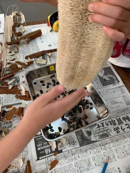 管理作業員さんと4年生で育てているヘチマが大豊作となり、本日20本程収穫しました。