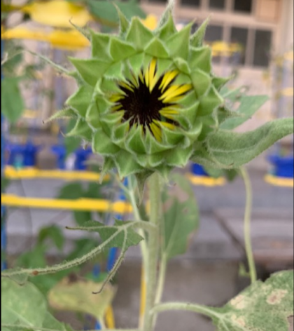 5月に撒いたヒマワリも、ようやく咲こうとしています。