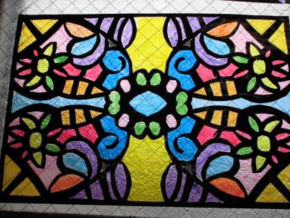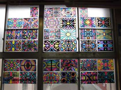 前回お伝えしたステンドグラス様の作品が掲示されていました。