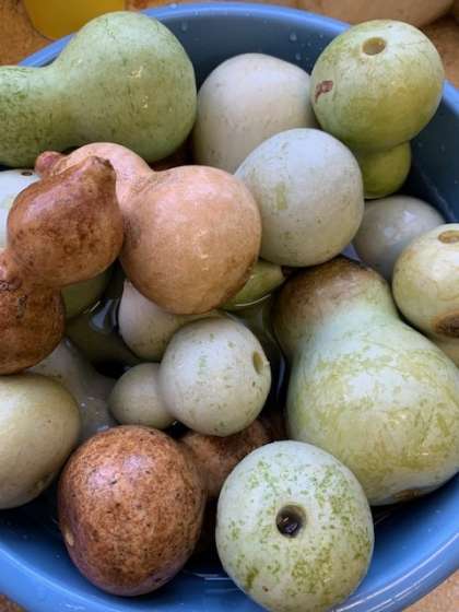 この夏、ヘチマとともに大豊作だったのがヒョウタン。30個ほど収穫することができました。