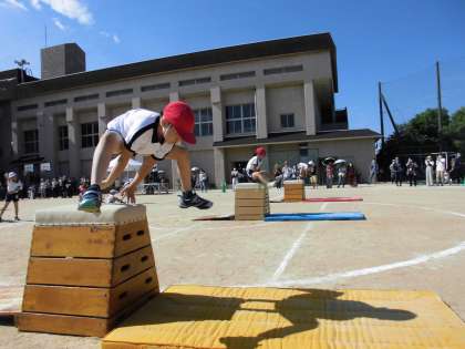 跳び箱の手の突きもしっかりとしています。