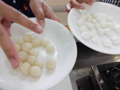 こねて、まるめて、ゆでて、冷まして、盛り付ければ、はいっ!一丁上がり!