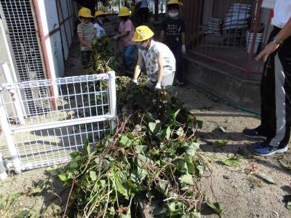 お芋についていた長—い蔓(つる)を使って遊んでみよう!