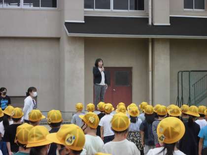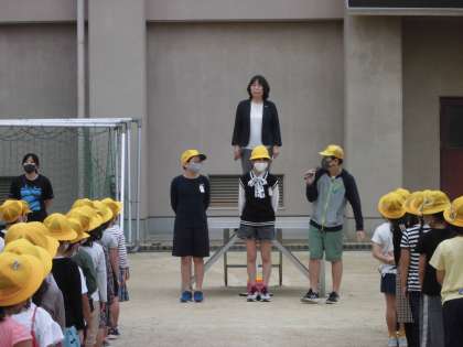 看護当番からは、10月の生活目標「運動場で元気に遊ぼう」の達成に向けたルーブリック(具体的な到達目標)についてお話がありました。