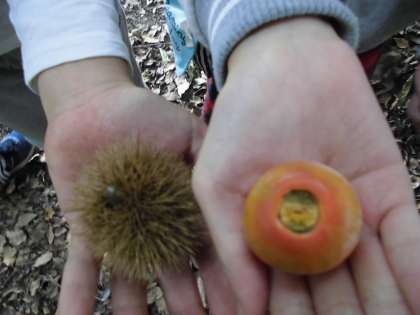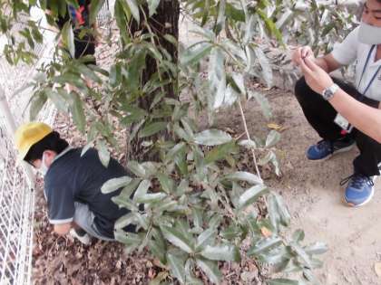 栽培委員会はドリームガーデンにあるさまざまな実を採集していました。
