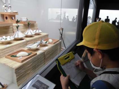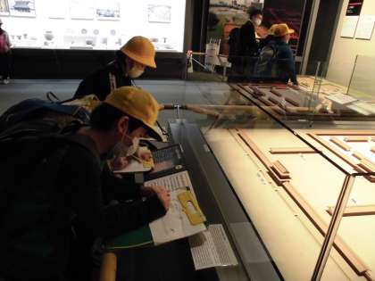 今日は雨が降りしきる中でしたが、その中の一つ大阪城を目指して出発しました。最初に訪れたのは大阪歴史博物館。ここでなにわの歴史をふりかえってみました。