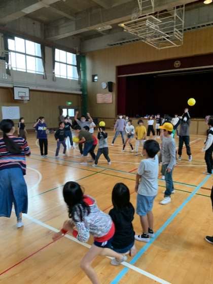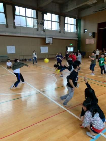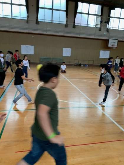 腹ごしらえのあとは、クラス対抗のドッジボール対決。