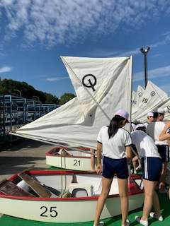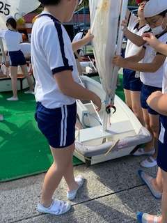 センターのインストラクターの方から説明を聞き、自分たちでヨットを組み立てます。