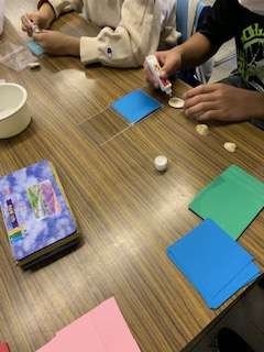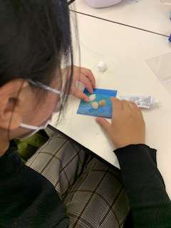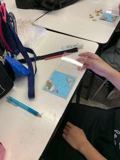 ?海辺でひろった貝殻をはりつけて、シェルメモリーを作りました。