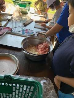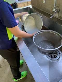 お米を洗ったり、かまどを作ったり、協力して頑張ってます。